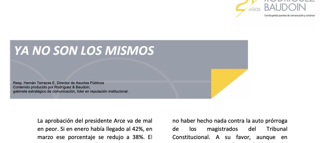 La aprobación del presidente Arce va de mal en peor. Si en enero había llegado al 42%, en marzo ese porcentaje se redujo a 38%. El problema es que, en el corto plazo, Arce no tiene ningún as bajo la manga que le permita revertir esa tendencia. Por el contrario, si la situación económica no mejora, los números pueden ser incluso menores, lo que para un candidato a la reelección puede representar un obstáculo prácticamente insalvable.
